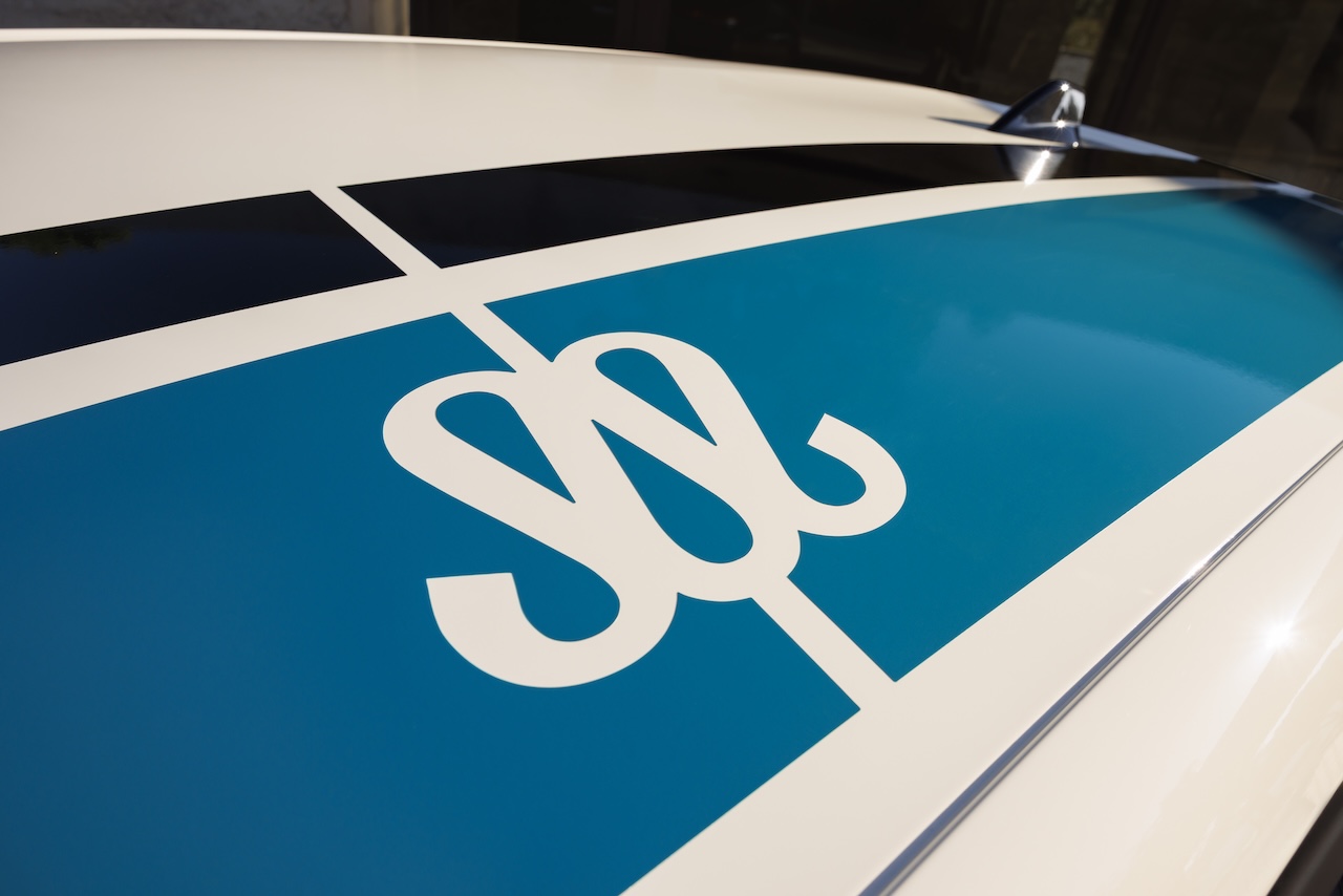 La sellerie en Alcantara® Noir se distingue par une broderie ton sur ton du logo « MSL » intégrée aux appuie-tête et par des surpiqûres crème et bleues. La planche de bord et les panneaux de portes se parent d’un liseré crème et de surpiqûres colorées, tandis que la signature « MSL » brodée fait face au passager avant, prolongeant cette immersion dans l’univers esthétique de Maison Sarah Lavoine.